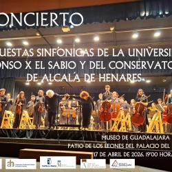 Gracias a la colaboración entre el Museo de Guadalajara (Delegación de Educación, Cultura y Deportes de la Junta de Comunidades de Castilla-La Mancha en Guadalajara), la Facultad de Música de la Universidad Alfonso X el Sabio y el Conservatorio Profesional de Alcalá de Henares, podremos disfrutar de forma libre y gratuita (300 butacas) de un concierto sinfónico en un lugar tan espectacular como el patio de los Leones del palacio del Infantado. Será este viernes, día 17 de abril a las 19 horas.